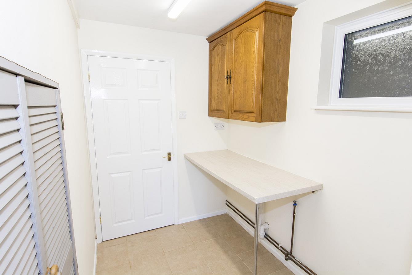 Utility Room - 2.21m x 1.63m (7'3" x 5'4") - Laminated work surface. Space and plumbing for automatic washing machine and dishwasher. Fitted medium oak facing wall unit. Double louvre doors to a spacious under stairs storage cupboard. Ceramic tiled flooring. Opaque double glazed window. Door to:-