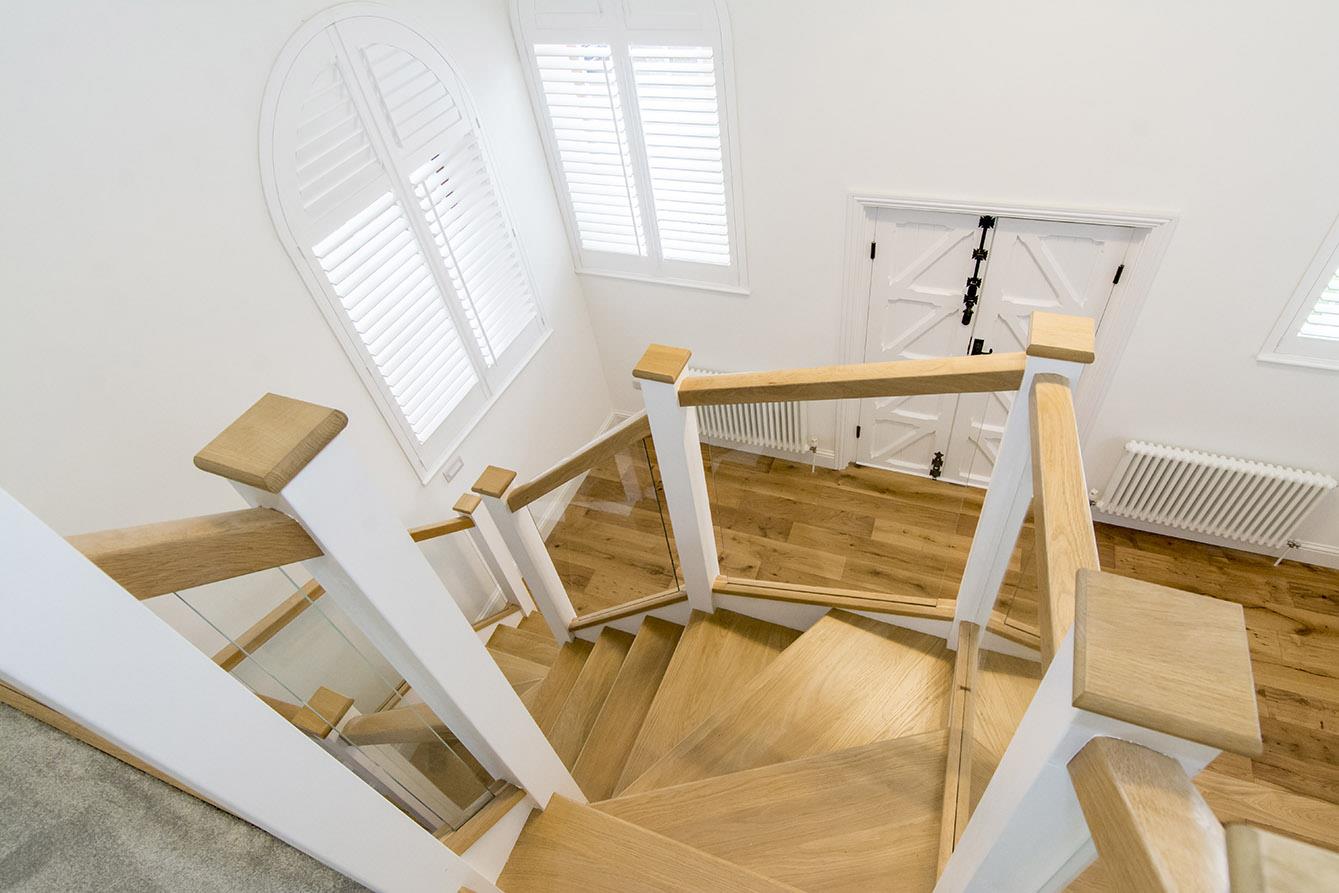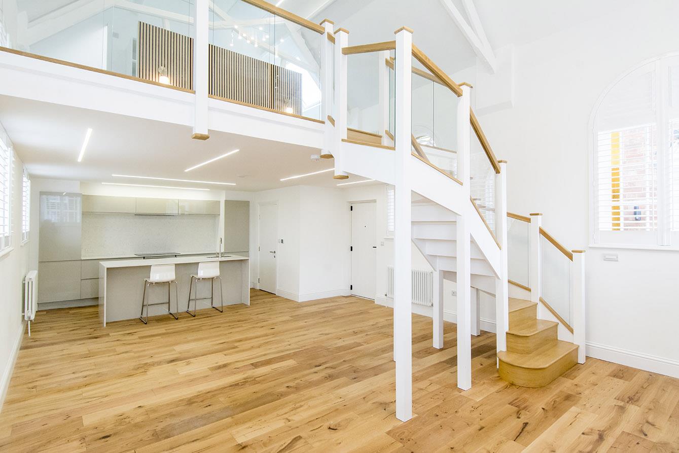 Open Plan Living Room & Kitchen - 9.25m x 5.16m (30'4" x 16'11") - Impressive and spacious room with full height ceilings at the front. Access via double timber doors. Shuttered windows to three sides. Solid oak flooring. Glass and oak staircase rising to the first floor. Television point. Feature column radiators. Side door leading outside. Door to utility/WC. Open to:-